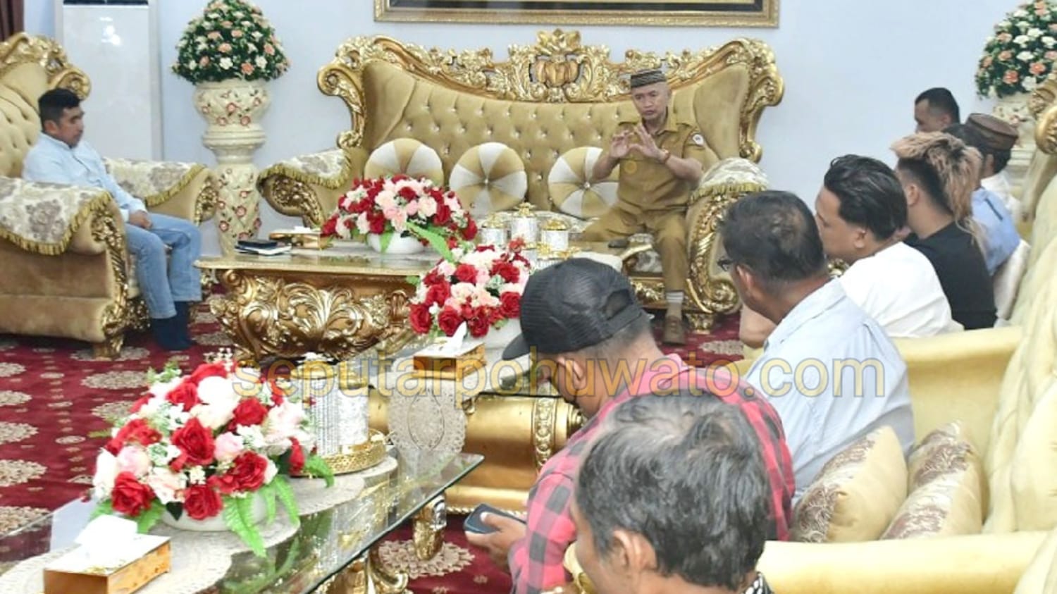 Bupati Pohuwato, Saipul A. Mbuinga, turun langsung mempertemukan warga pemilik lahan dengan manajemen perusahaan dalam sebuah pertemuan yang digelar di rumah jabatan bupati, Selasa (14/04/2026).