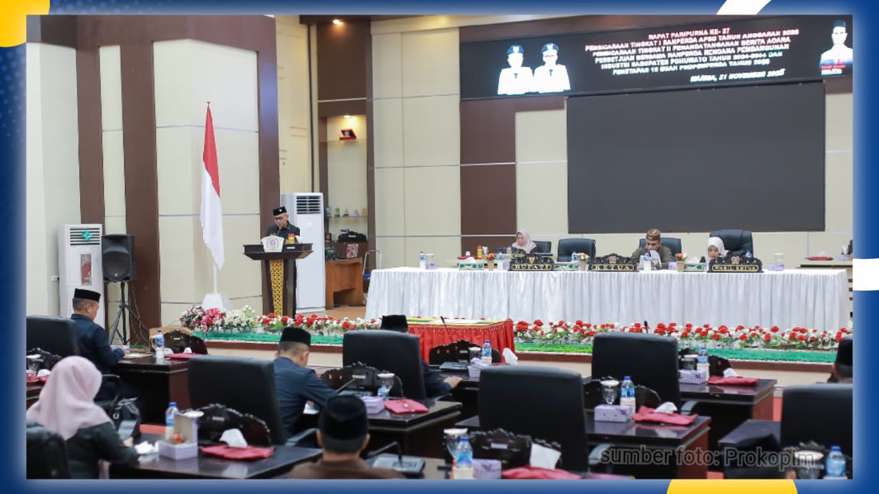 Rapat paripurna tersebut juga menetapkan Program Pembentukan Peraturan Daerah (Propemperda) Tahun 2026. Selain itu, Ranperda Rencana Pembangunan Industri Kabupaten Pohuwato Tahun 2024–2044 juga resmi disetujui.