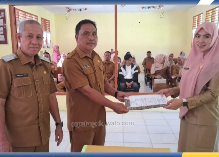 SEPUTARPOHUWATO.COM – Serah terima jabatan Kepala Sekolah SD Negeri 05 Buntulia resmi dilaksanakan pada Selasa (02/12/2025) di aula sekolah setempat. Acara tersebut dihadiri langsung oleh Kepala Dinas Pendidikan dan Kebudayaan Kabupaten Pohuwato, Arman Mohamad, S.Pd.I., M.Si., bersama jajaran staf Disdikbud.