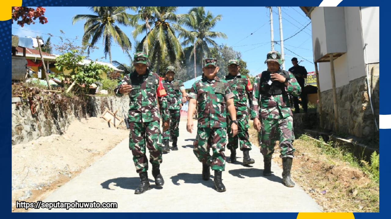 Pada Selasa (14/10/2025), Komandan Korem 133/Nani Wartabone Brigjen TNI Hardo Sihotang turun langsung meninjau progres pembangunan jalan rabat beton sepanjang 1.143 meter di desa tersebut.