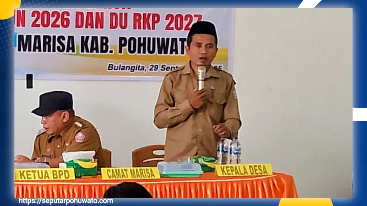 SEPUTARPOHUWATO.COM – Pemerintah Desa Bulangita, Kecamatan Marisa, Kabupaten Pohuwato, menggelar Musyawarah Perencanaan Pembangunan Desa (Musrenbangdes) dalam rangka penyusunan Rencana Kerja Pemerintah Desa (RKPDes) Tahun 2026 serta Daftar Usulan (DU) RKP Tahun 2027, Senin (29/09/2025).