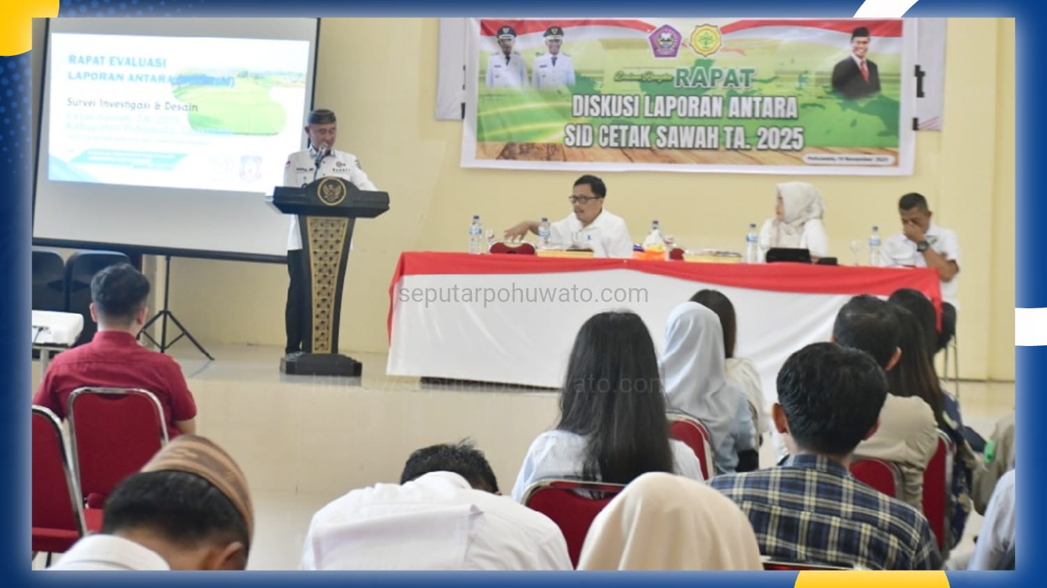Dalam sambutannya, Bupati Saipul mengatakan bahwa rapat evaluasi SID ini merupakan tahap krusial dalam perjalanan panjang pemerintah daerah memperjuangkan program cetak sawah untuk memperkuat sektor pertanian di Pohuwato.