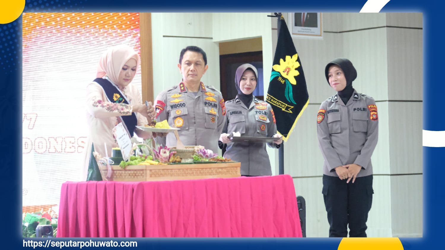 Acara makin semarak dengan pemotongan tumpeng, di mana potongan pertama diberikan kepada Polwan tertua dan termuda sebagai simbol kebersamaan lintas generasi.
