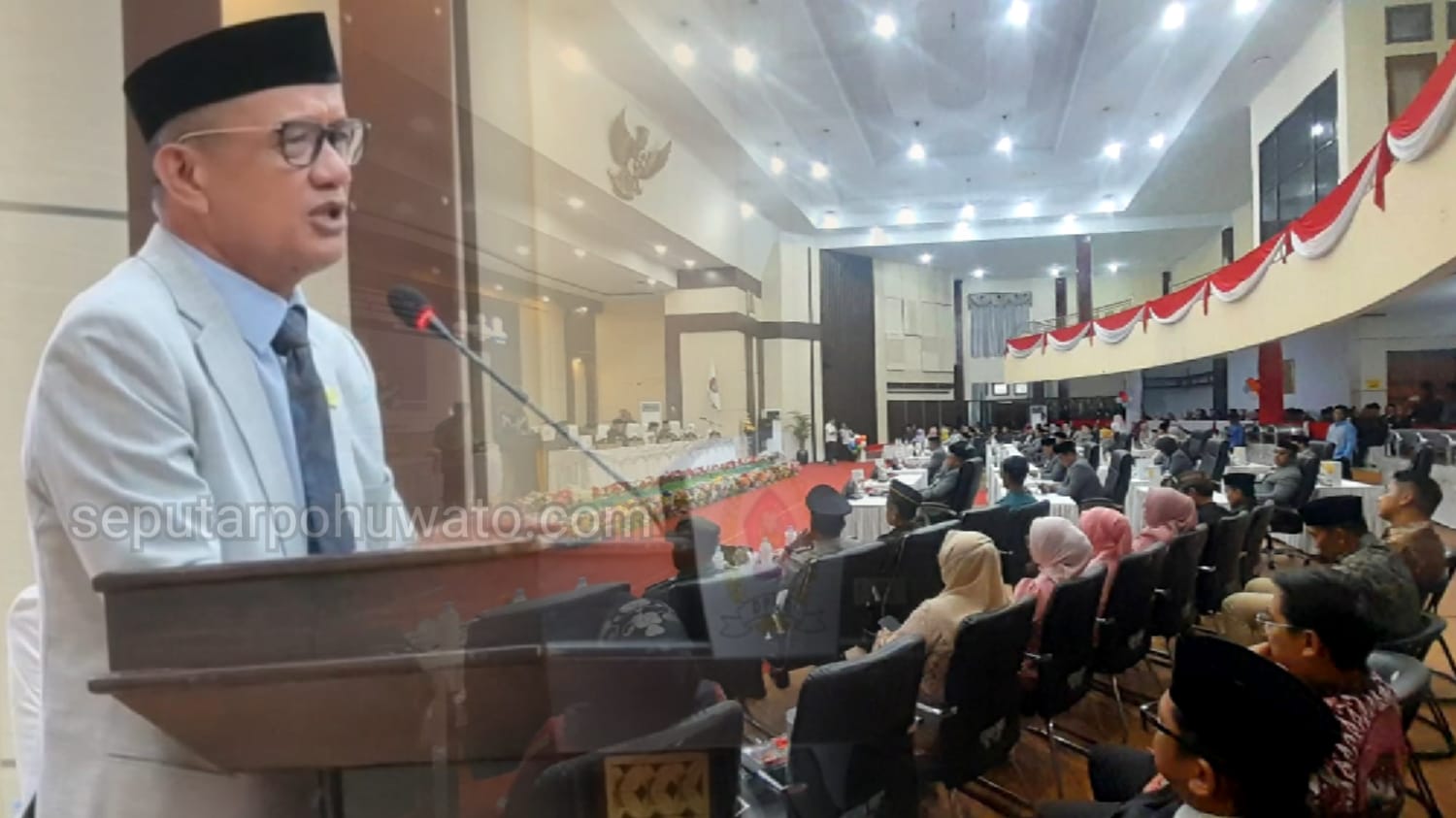 SEPUTARPOHUWATO.COM – Momen Sidang Paripurna peringatan Hari Ulang Tahun (HUT) ke-23 Kabupaten Pohuwato diwarnai pesan tegas dari Anggota DPD RI asal Daerah Pemilihan (Dapil) Gorontalo, Syarif Mbuinga.