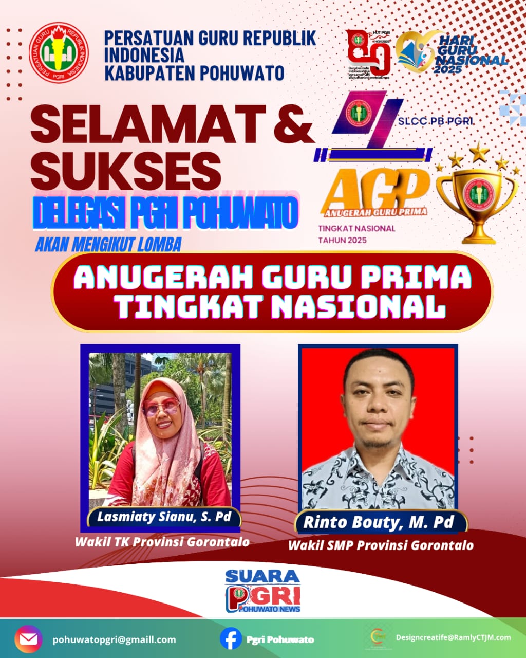 Keduanya akan tampil di Jakarta melalui program SMART PGRI, sebagaimana dijelaskan oleh Rahmat Pakaya, M.Pd, Ketua Kelengkapan Organisasi dan PLCC SMART PGRI Pohuwato.