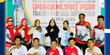 SEPUTARPOHUWATO.COM – Kabar membanggakan datang dari dunia pendidikan Pohuwato. Tim Kontingen Persatuan Guru Republik Indonesia (PGRI) Kabupaten Pohuwato berhasil menorehkan prestasi luar biasa pada ajang Pekan Olahraga dan Seni Guru (PORSENIJAR) Tingkat Provinsi Gorontalo Tahun 2025.