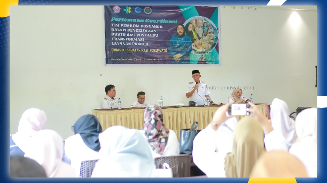 SEPUTARPOHUWATO.COM – Pemerintah Kabupaten Pohuwato melalui Dinas Kesehatan terus mendorong penguatan layanan kesehatan masyarakat berbasis desa. Hal tersebut diwujudkan melalui Pertemuan Koordinasi Tim Pembina Posyandu terkait pengelolaan Pustu dan Posyandu dalam rangka transformasi layanan primer, yang dibuka secara resmi oleh Wakil Bupati Pohuwato, Iwan S. Adam, Rabu (03/12/2025), di Aula Kafe Oma.