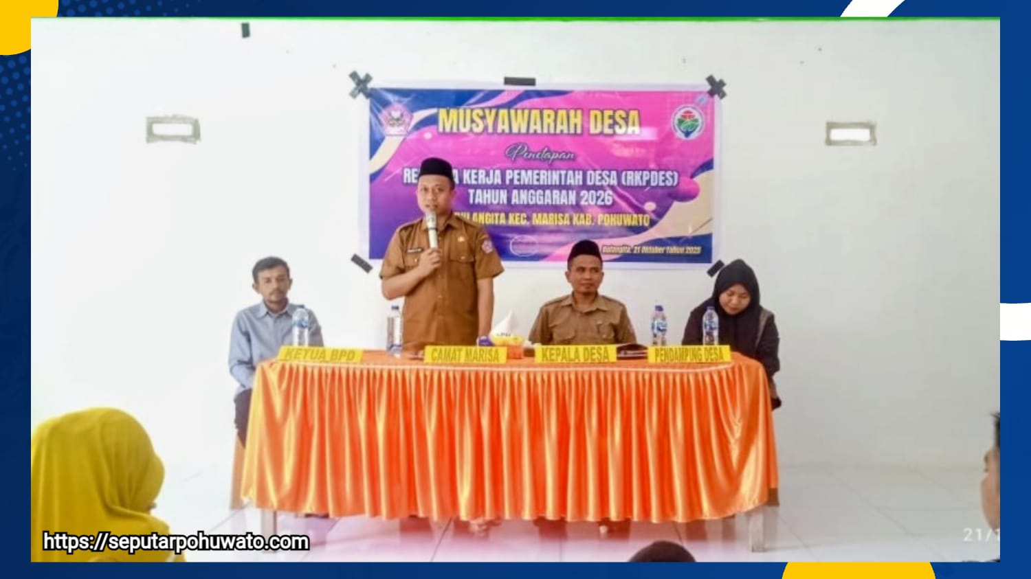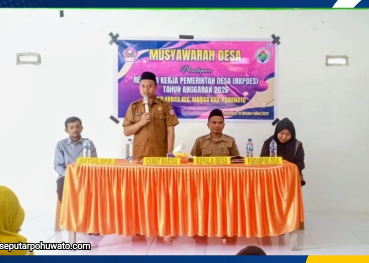 SEPUTARPOHUWATO.COM – Pemerintah Desa Bulangita, Kecamatan Marisa, Kabupaten Pohuwato, menggelar Musyawarah Desa (Musdes) dalam rangka penetapan Rencana Kerja Pemerintah Desa (RKPDES) Tahun Anggaran 2026, Selasa (21/10/2025).